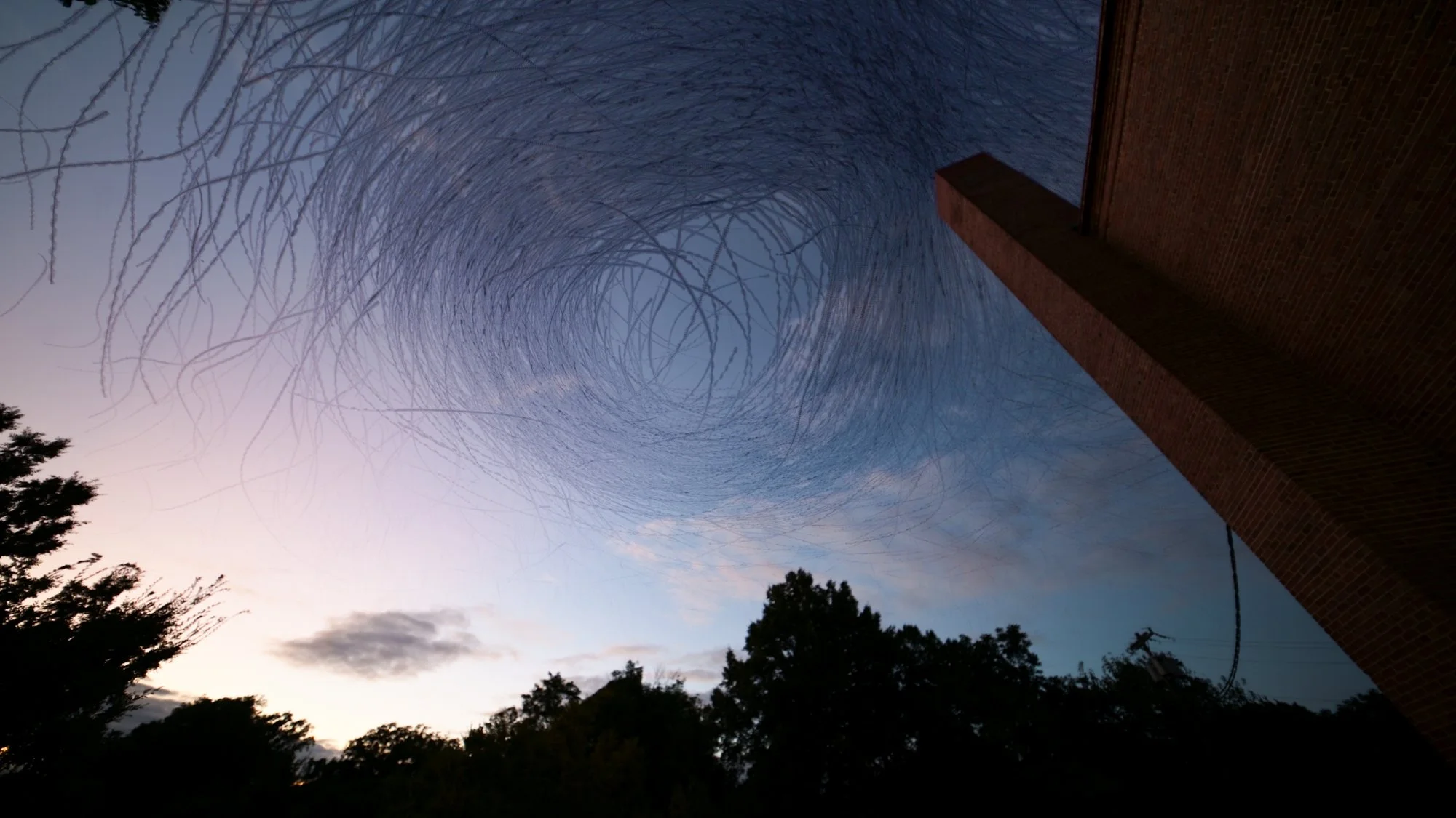 This image renders a few thousand Swallows as they fly past me, some flying as close as 10 feet away, while others are hundreds of feet above. 35mm, 240 frames overlayed into one image.